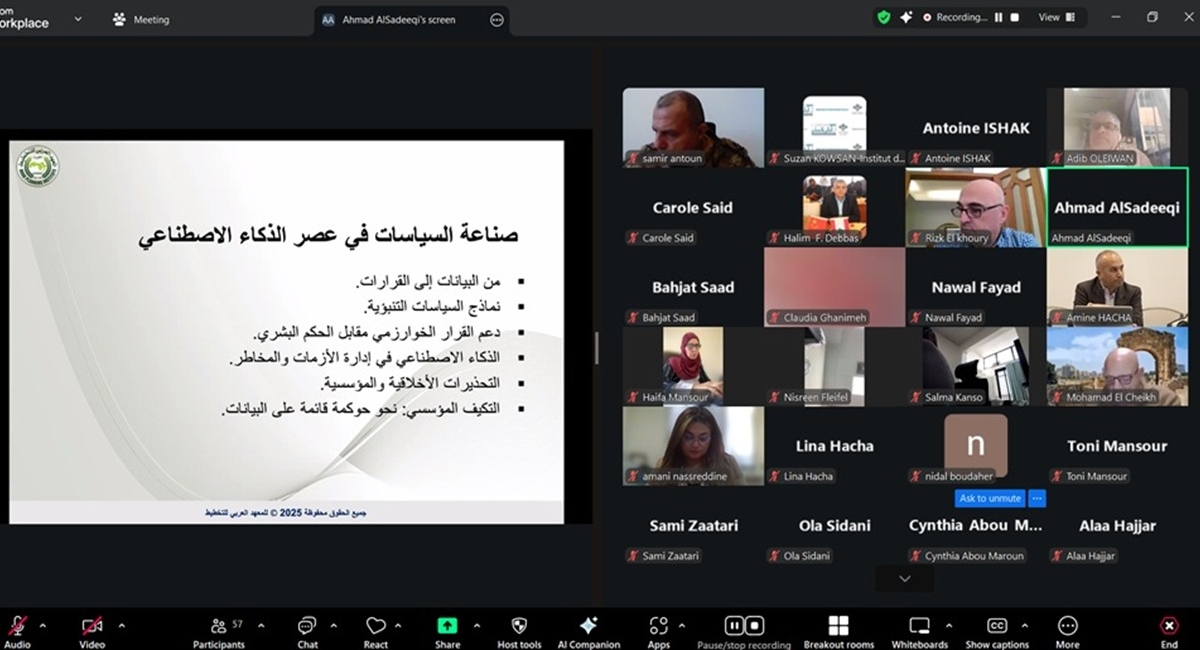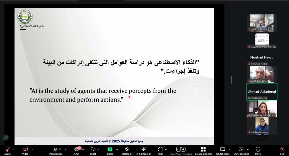 شارك في هذه الدورة التدريبية من تنظيم مهعد باسل فليحان بالتعاون مع المعهد العربي للتخطيط في الكوتت 63 شخصاُ من القطاعي العام والخاص وهدفت إلى تزويد المشاركين بالمعارف والمهارات اللازمة للتمييز بين الأنواع المختلفة للذكاء الاصطناعي، مثل الذكاء الضيق (ANI)، والذكاء العام (AGI)، والذكاء الفائق (ASI)، كما تتيح فهم آلية عمل النماذج الذكية،