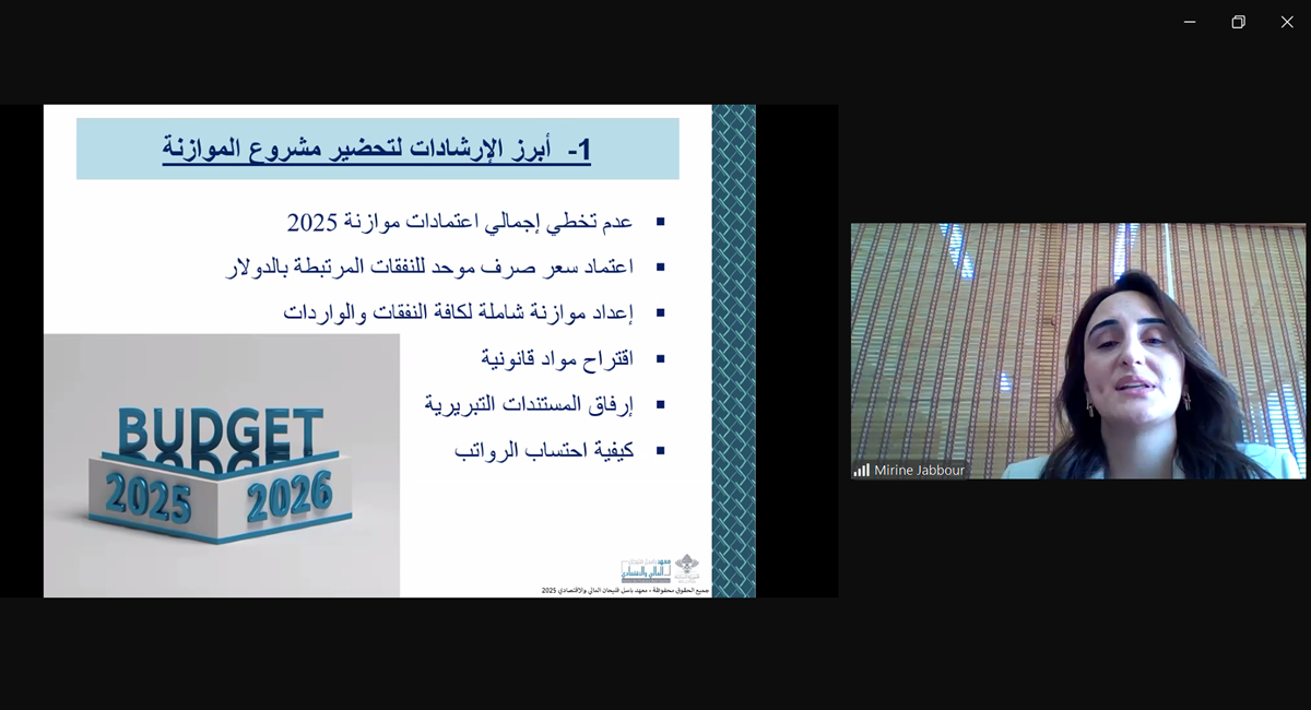 عرض هذا الوبينار مضمون تعميم الموازنة العامة 2026 وأبرز متطلّباته. كما تطرّق إلى التعليمات المتعلّقة بكيفية تحضير النفقات ووالواردات على ضوء التوقعات المالية.