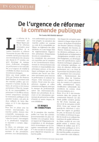 Cet article met en lumière l'urgence de réformer la commande publique au Liban afin de stabiliser la situation financière et relancer l'économie du pays. Il établit un lien entre la corruption et la commande publique, en se concentrant particulièrement sur la passation des marchés.