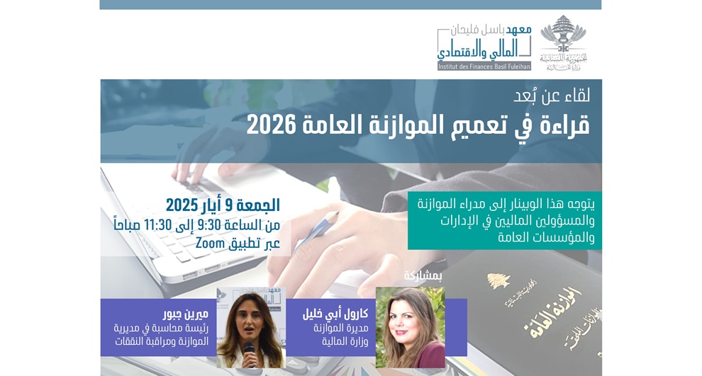 عرض هذا الوبينار مضمون تعميم الموازنة العامة 2026 وأبرز متطلّباته. كما تطرّق إلى التعليمات المتعلّقة بكيفية تحضير النفقات ووالواردات على ضوء التوقعات المالية.