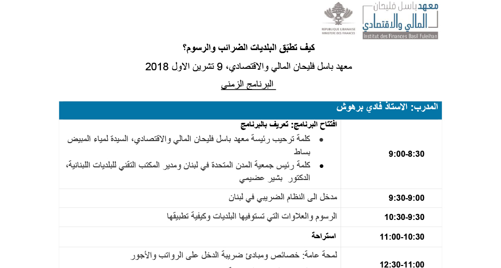هدفت هذه الدورة إلى تقديم مدخل الى النظام الضريبي في لبنان والرسوم والعلاوات التي تستوفيها البلديات وكيفية تطبيقها.
